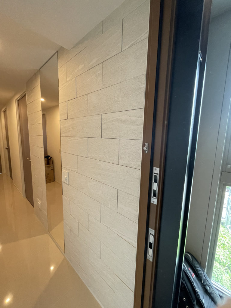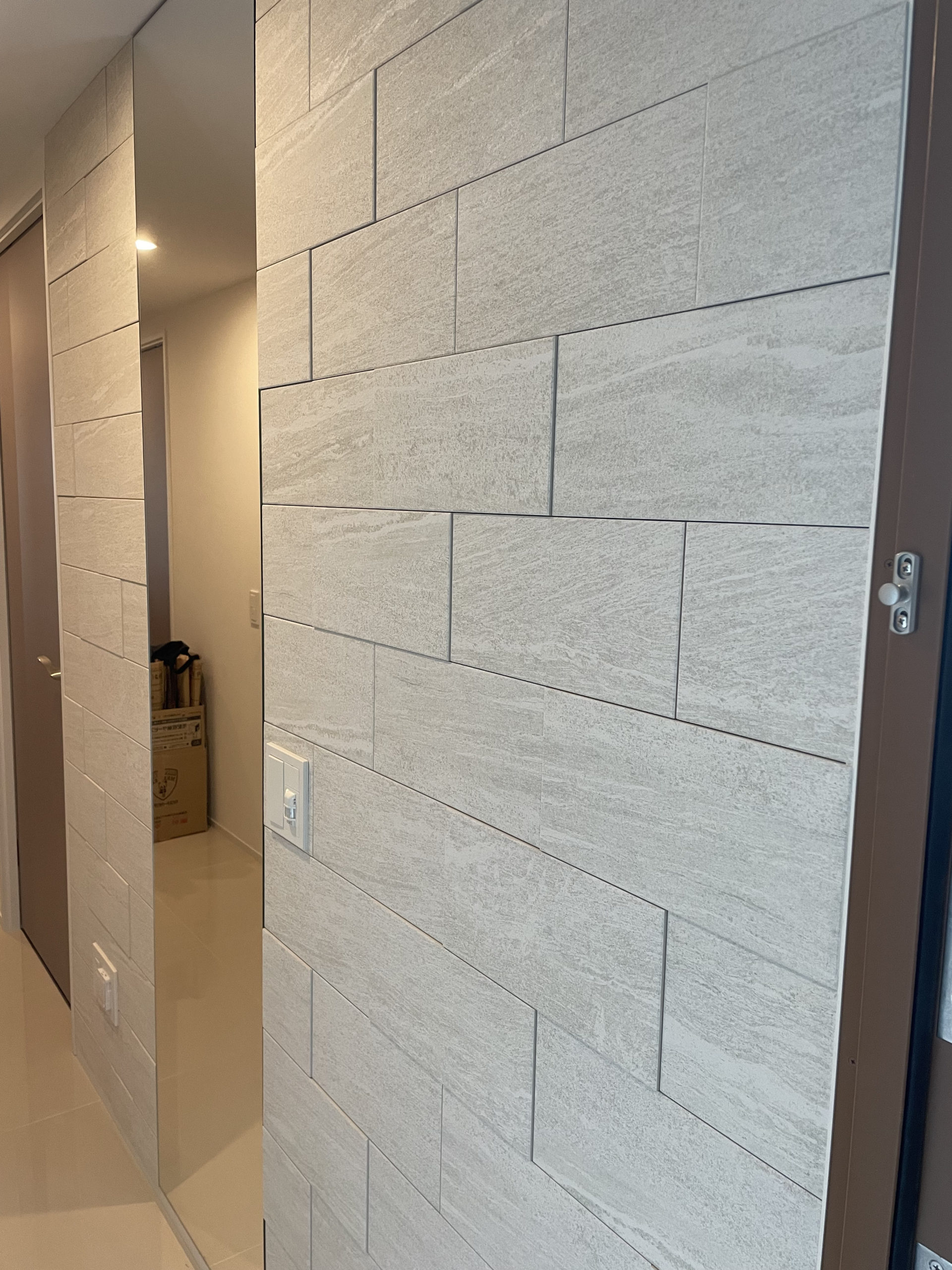 今回は玄関へ「ヴァルスロック ホワイト」&オーダーミラーを施工しております。