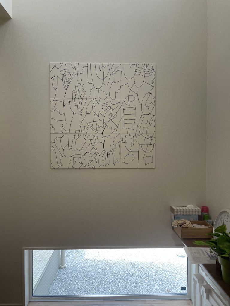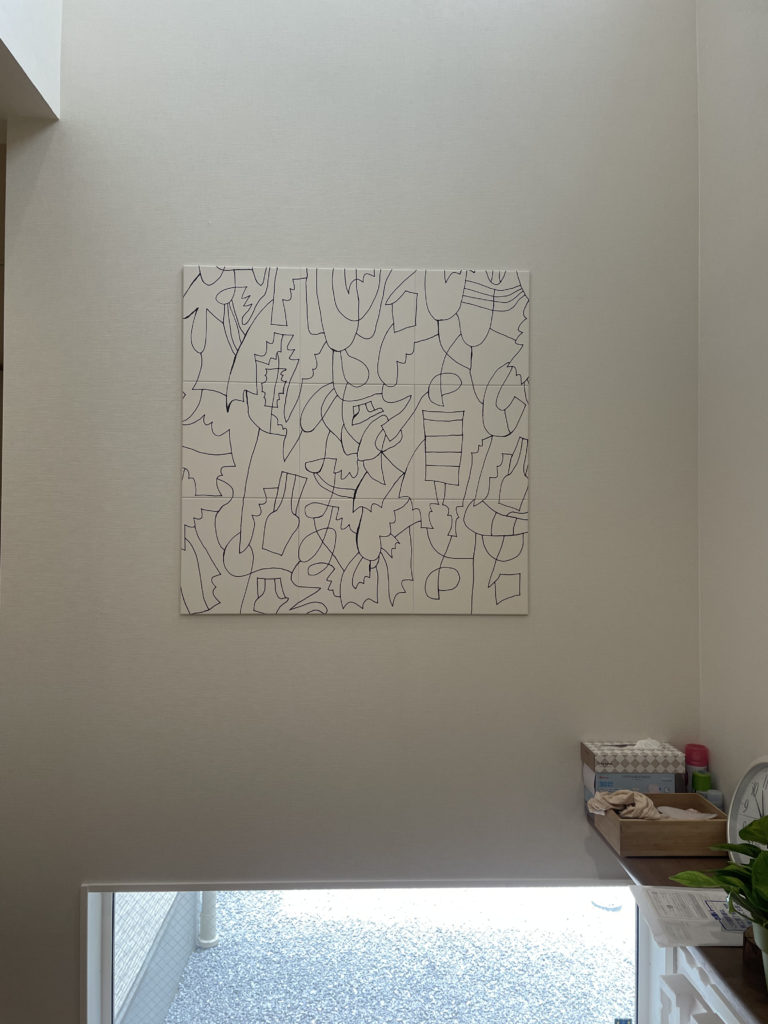 3か所目、玄関はエコカラットセルフ エコカラットセルフ EDPK-9090/51を施工しております、エコカラットセルフはDIYで可能な商品ですがトイレのエコカラットセルフ オーダーミラーと一緒に今回はご依頼をいただきました。