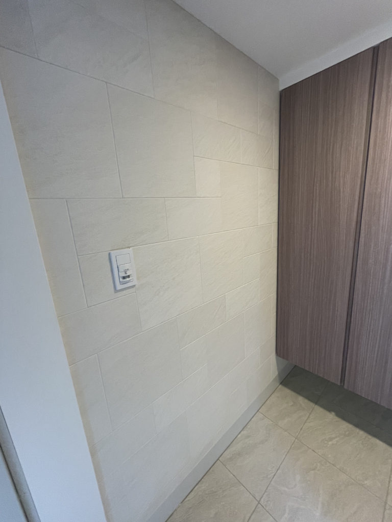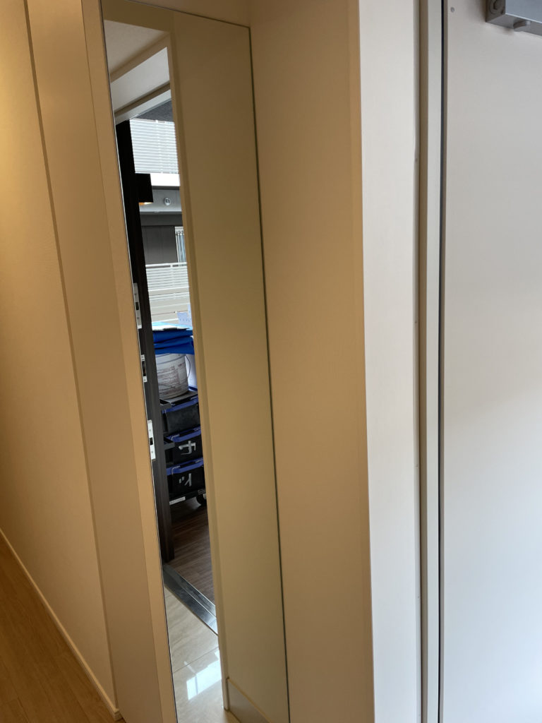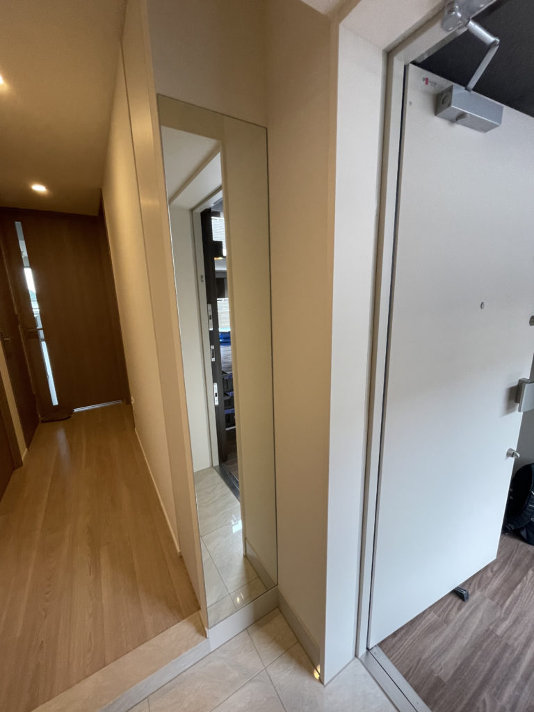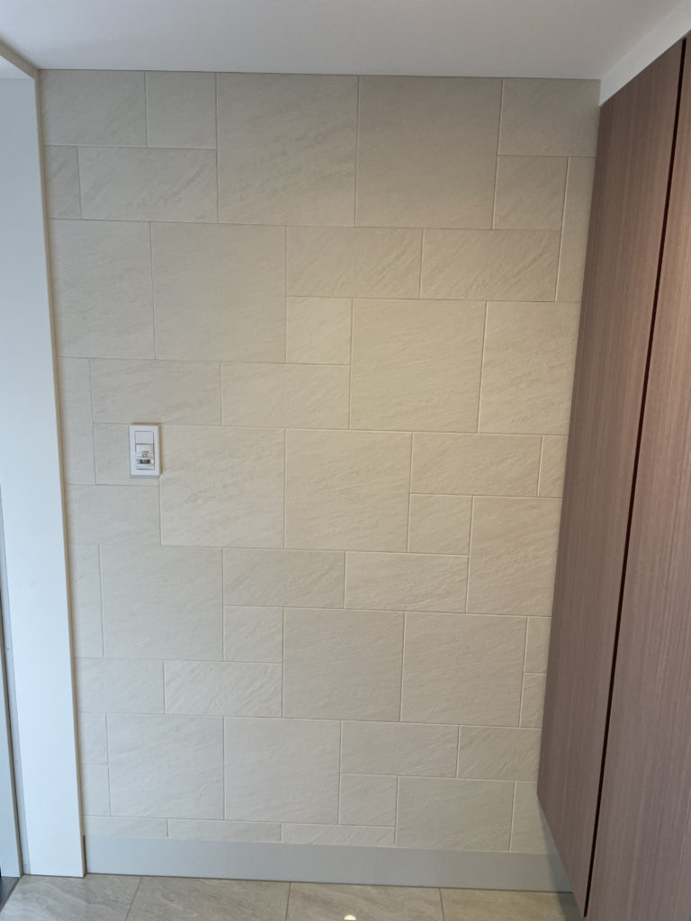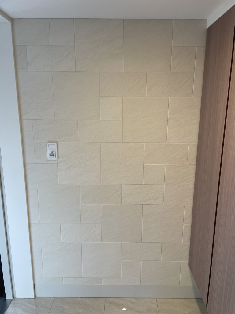 今回は玄関「ストーンⅡ アイボリー」&オーダーミラー施工