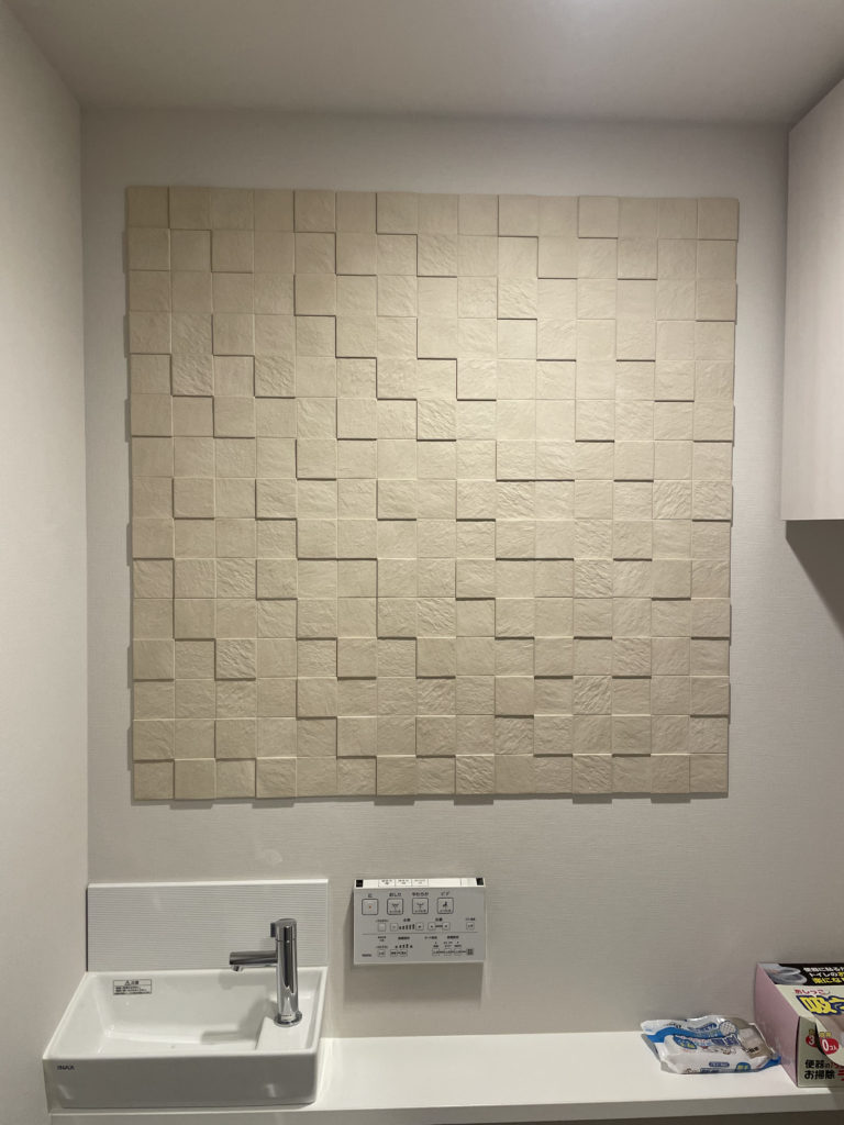 今回はリビング エコカラット「陶連子 こういろ」・玄関 エコカラット「サンティエ アイボリー」&オーダーミラー・トイレ エコカラット「ペトラスクエア ライトベージュ」を施工いたしました。